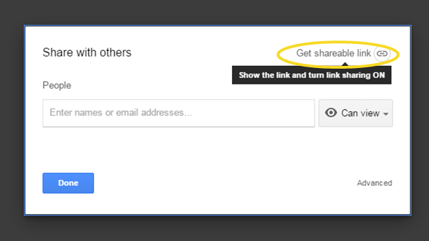 - Click "Get shareable link" on the top right corner of the lightbox that pops up.